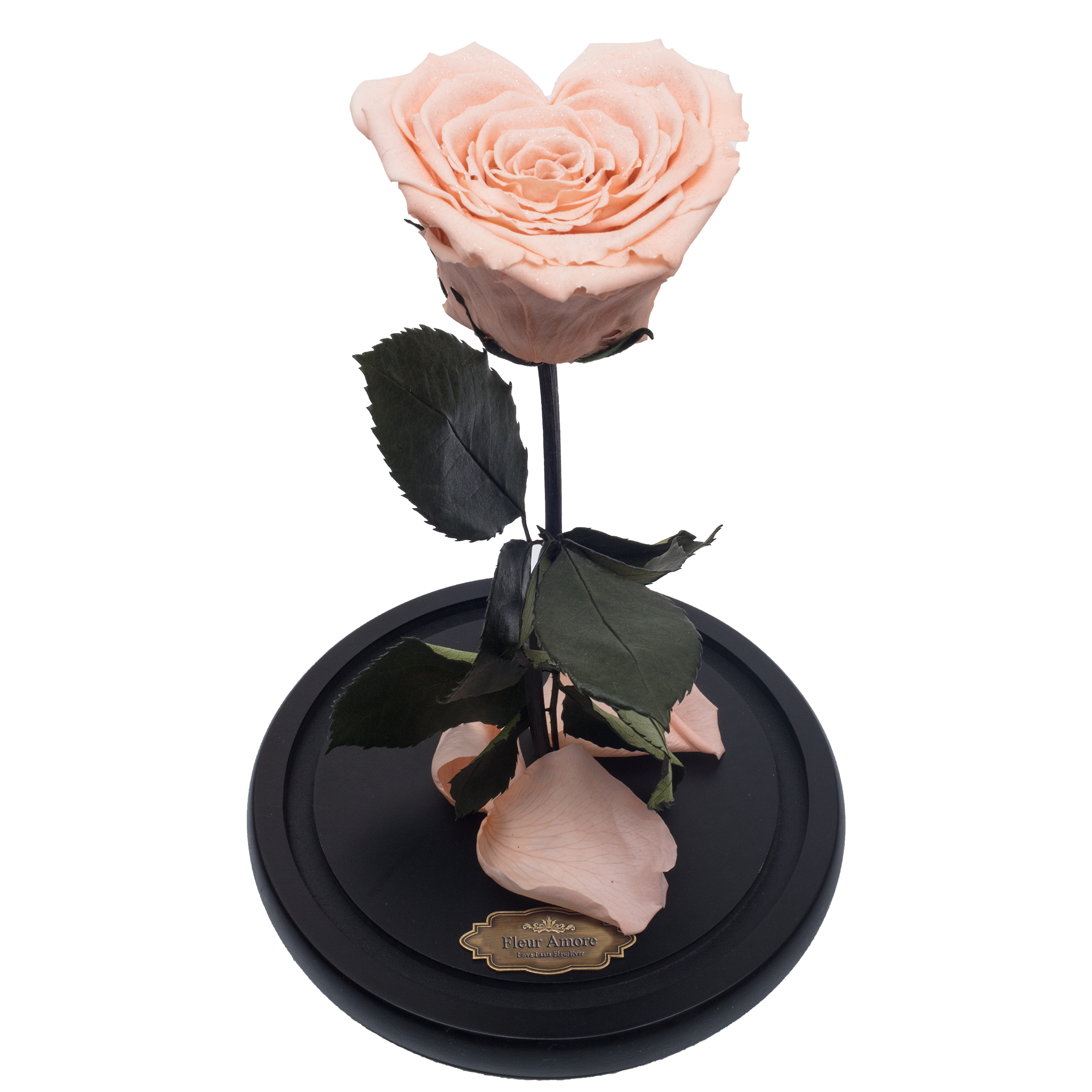 Peach with Crystal Dust Heart Shape Preserved Rose | Beauty and The Beast Glass Dome