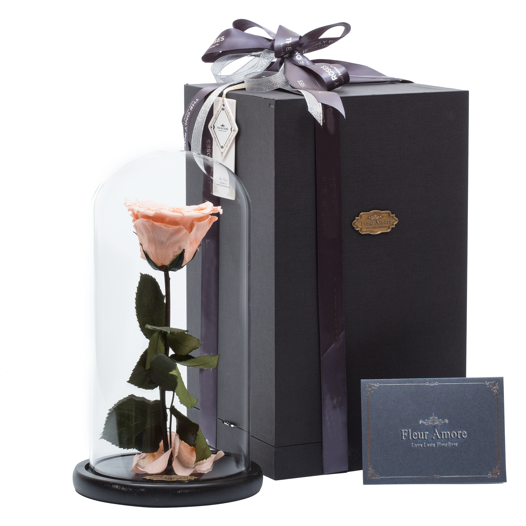 Everlasting Rose® color: Peach with Crystal Dust Everlasting Rose® shape: Heart Rose dome diameter: 5.9 in Rose dome height: 11.8 in Everlasting Rose® diameter: 3.7 in