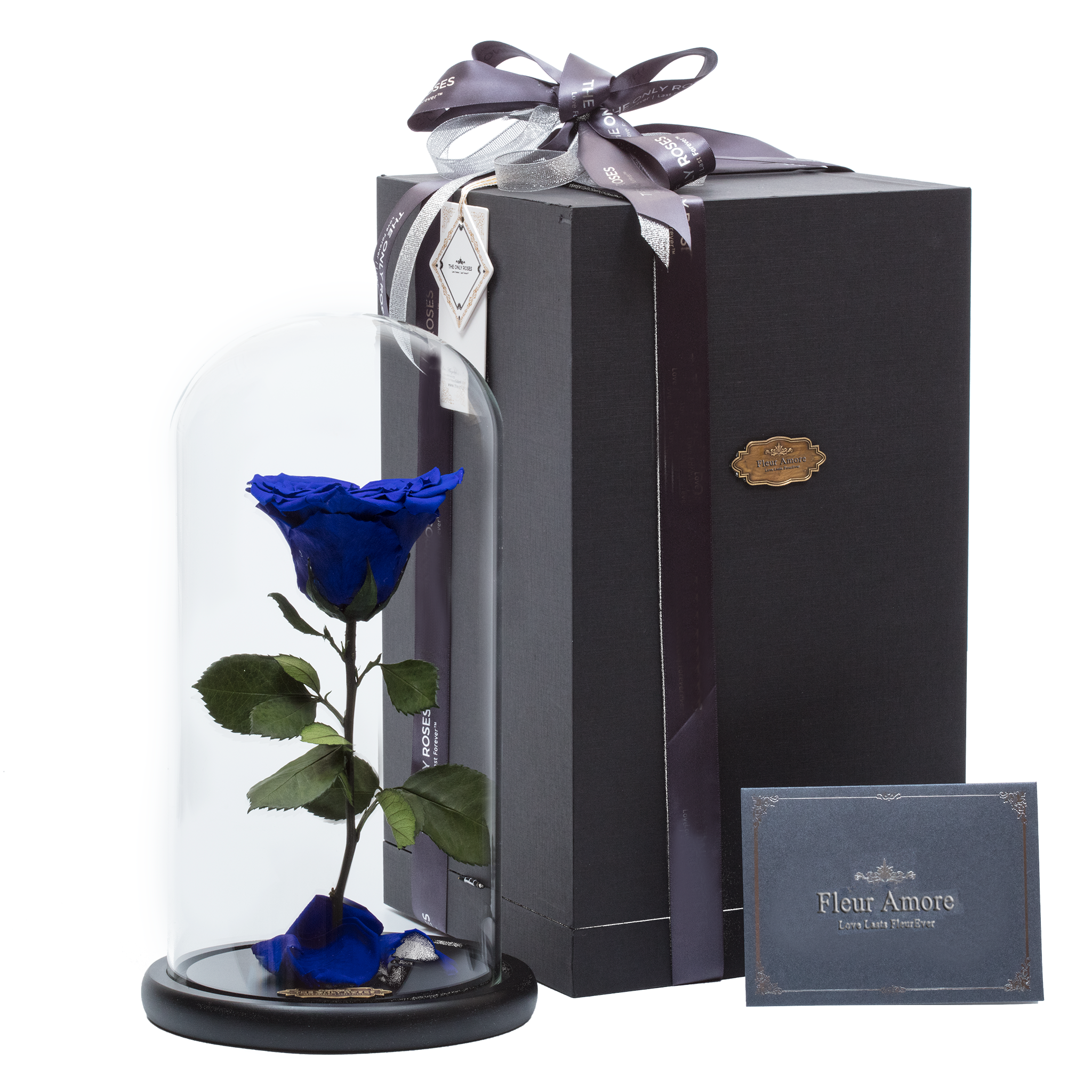 Everlasting Rose® color: Royal Blue Everlasting Rose® shape: Heart Rose dome diameter: 5.9 in Rose dome height: 11.8 in Everlasting Rose® diameter: 3.7 in