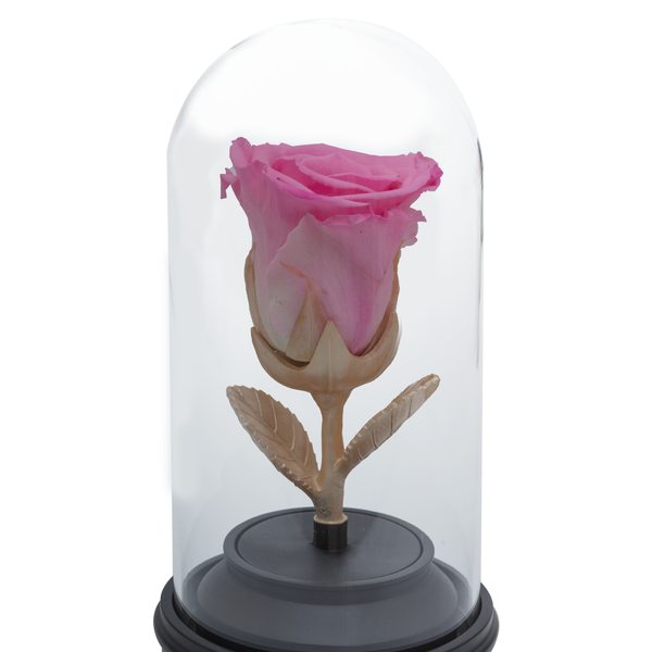 Everlasting Rose® color: Pink Number of Everlasting Rose®: One Rose globe diameter: 3.7 in Rose globe height: 8.3 in Everlasting Rose® diameter: 2 in
