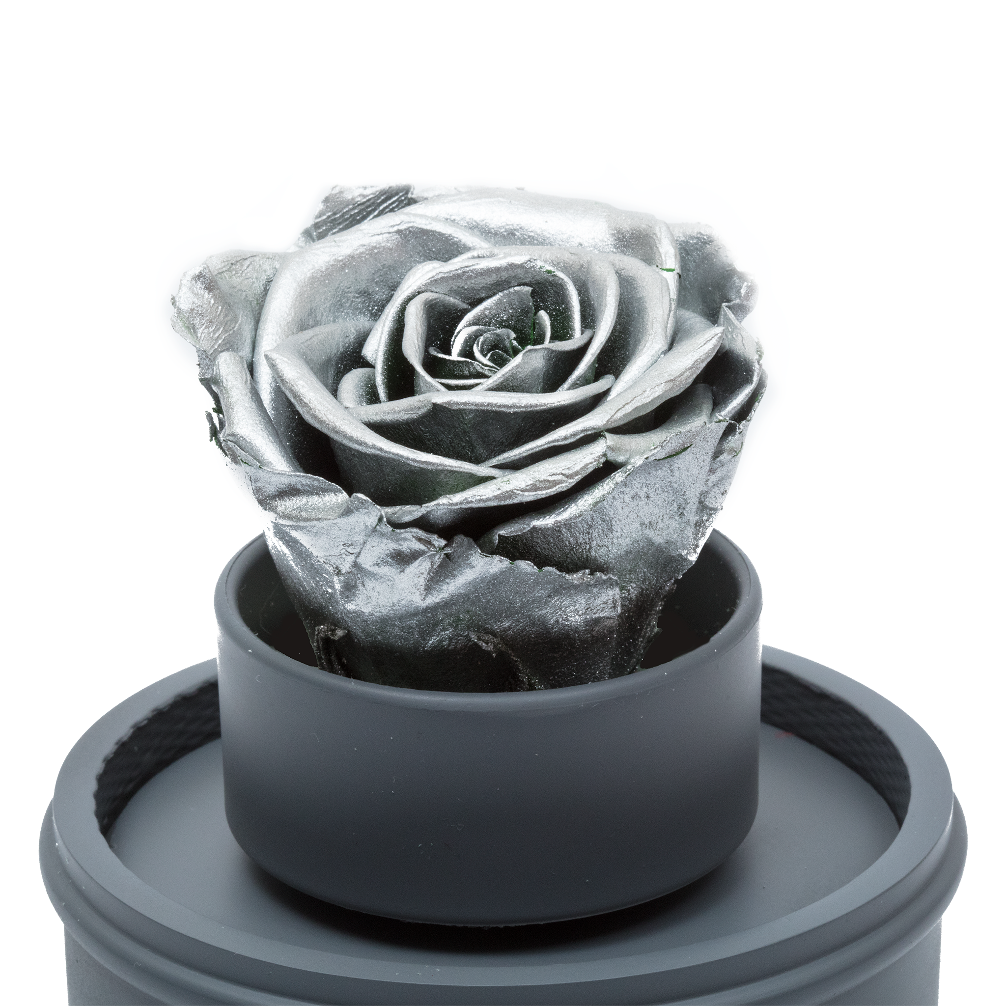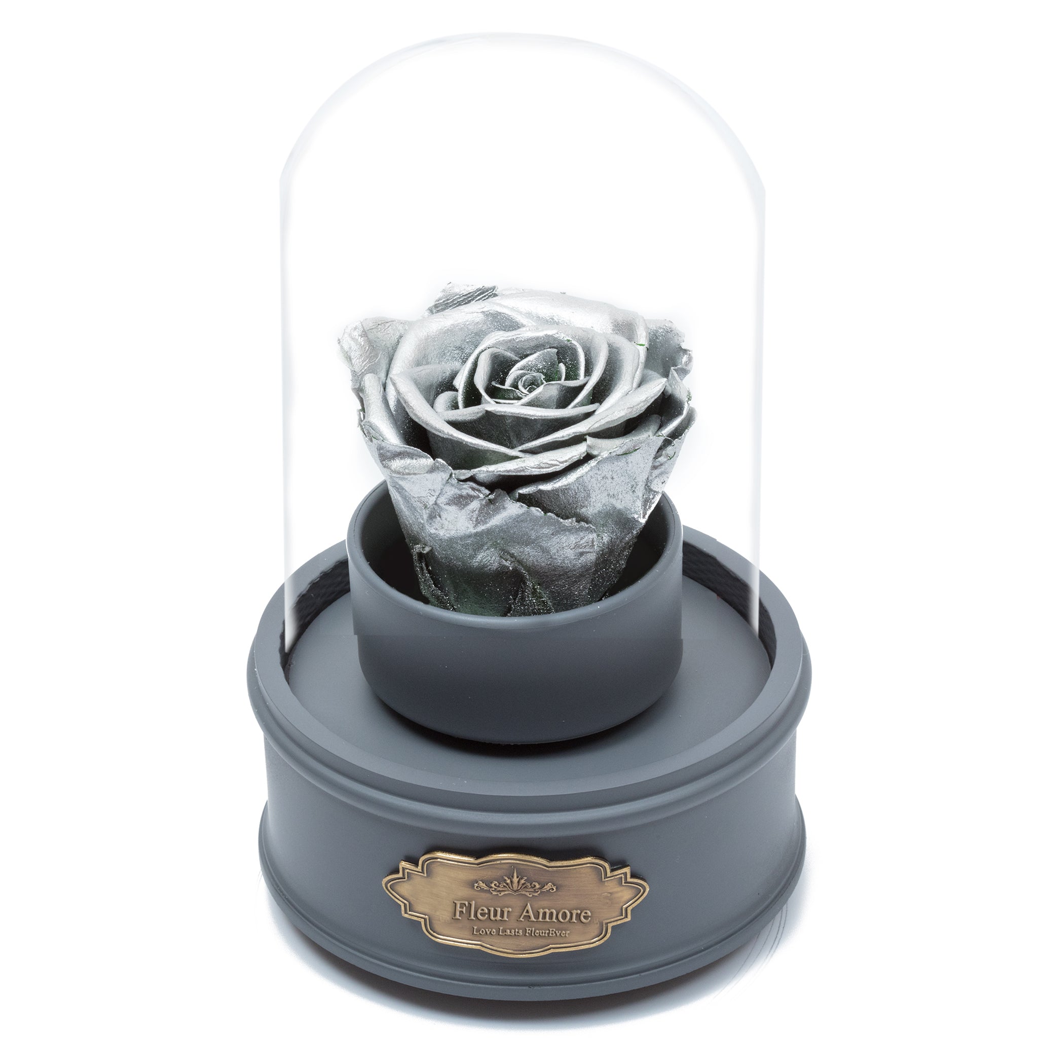 SILVER PRESERVED ROSE|THE ONLY REGULAR GREY MUSIC GLOBE