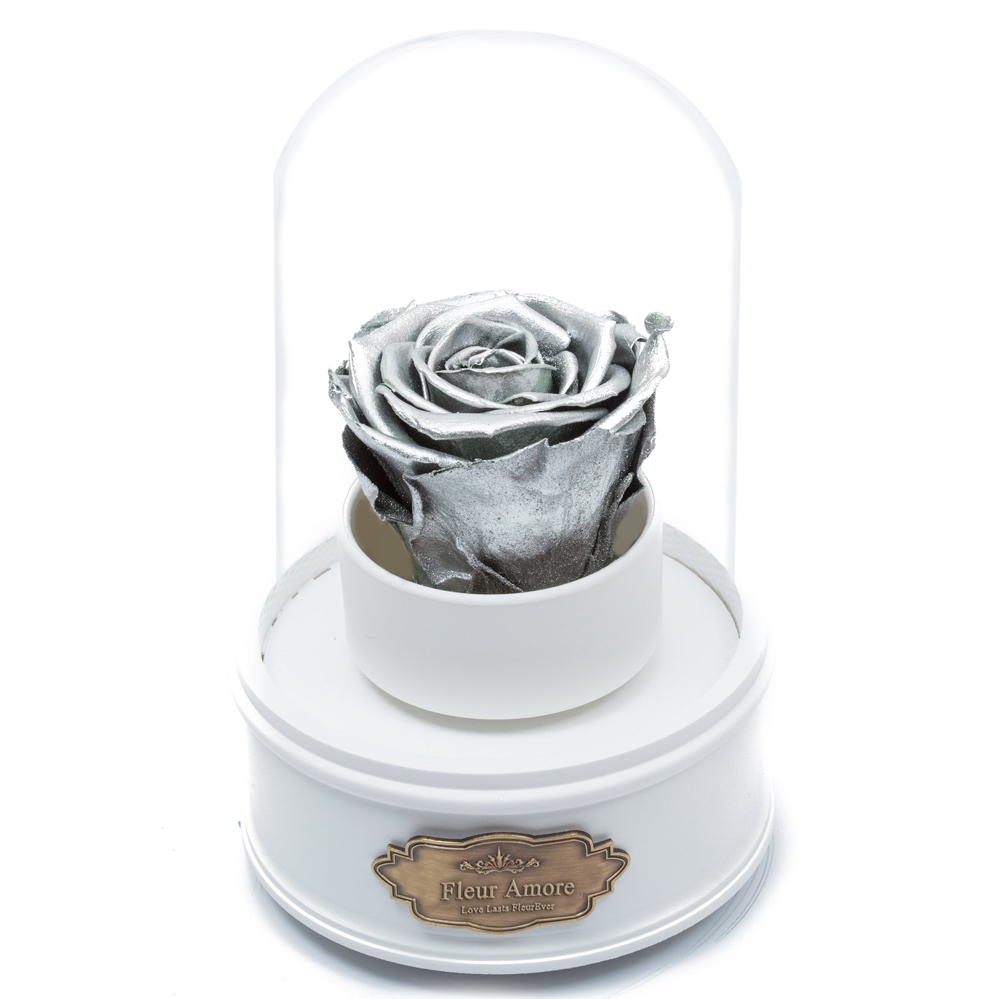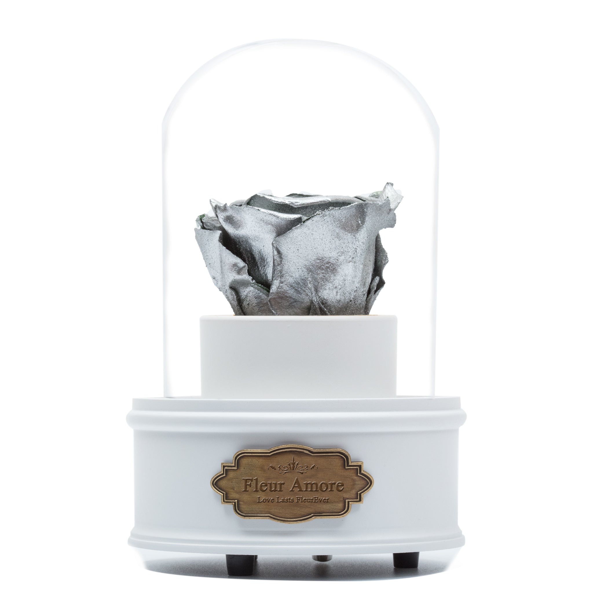 SILVER PRESERVED ROSE|THE ONLY REGULAR WHITE MUSIC GLOBE